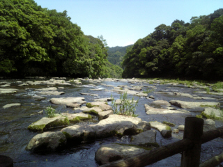 ここは、国の天然記念物になってる「甌穴」という場所です。