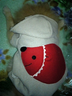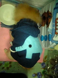 最近、急に寒くなったからね・・・メリにも服を着せてきた。人間さん、動物と家族の人達