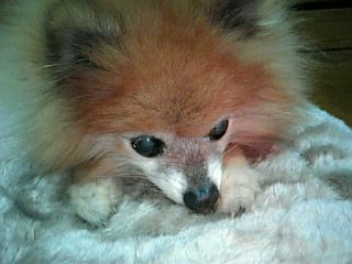 私の部屋にご招待してみたワンコさんを♪ このムートンぽい座布団がお気に入りです。