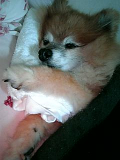 なんか、顔が重い・・・見えない・・・携帯で写メして状況確認。どんどん重くなり、眠りに入ったワンコ。寄りそうにも寄り添い方が・・・